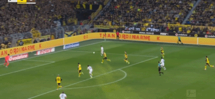 第45+1分鐘,阿德耶米突破傳中,布蘭特破門,多特1-0圣保利